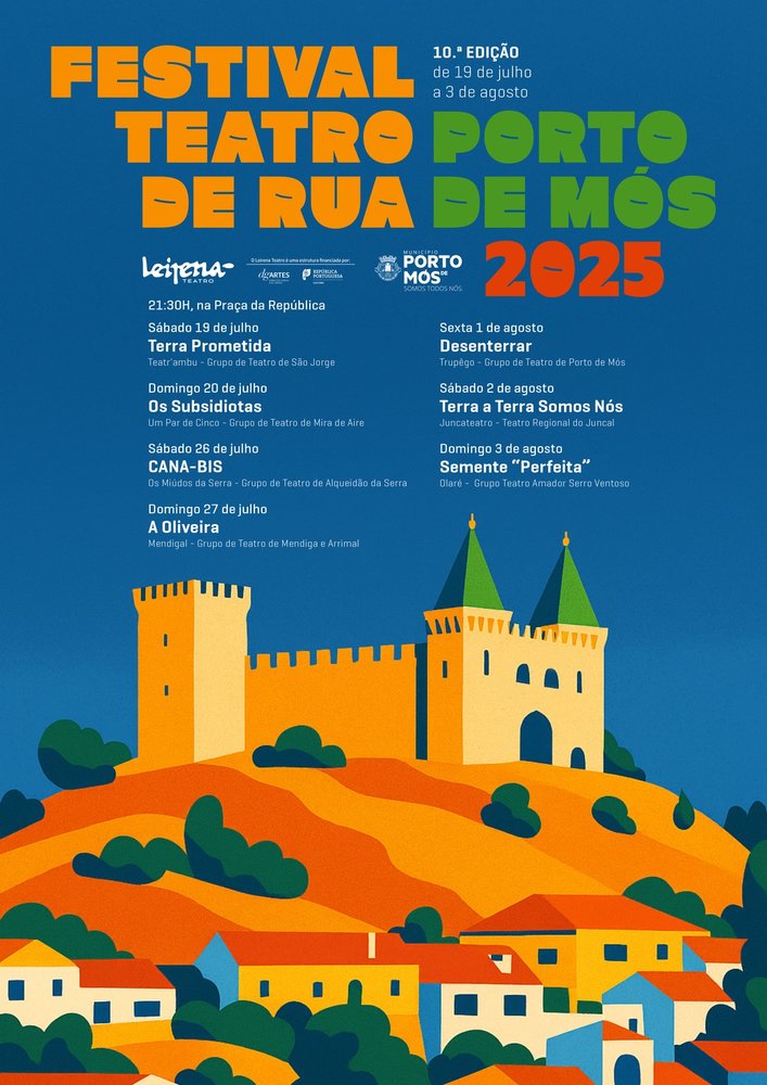 Produzido pelo Leirena Teatro, o Festival de Teatro de Rua de Porto de Mós vai já na décima edição, com o propósito de valorizar o teatro comunitário, dinamizar o centro histórico e envolver habitantes e visitantes a viverem a cultura de forma próxima, acessível e envolvente.