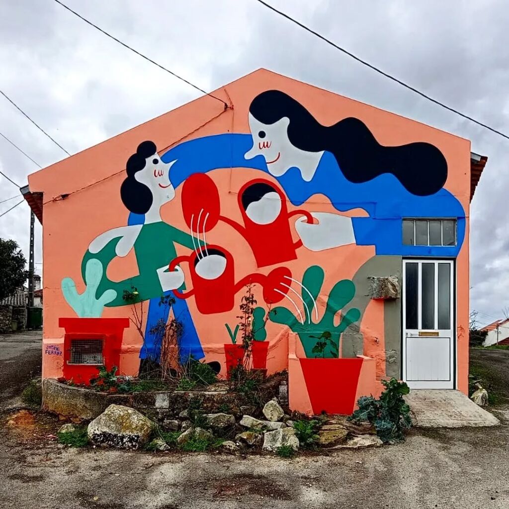 O projeto Aldeia Pintada por Outros resultou em cinco novas pinturas criadas por Mantraste, Frio, Jaime Ferraz, Mariana Malhão e Hera.