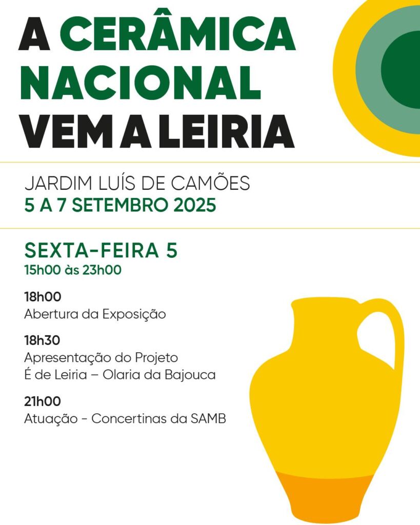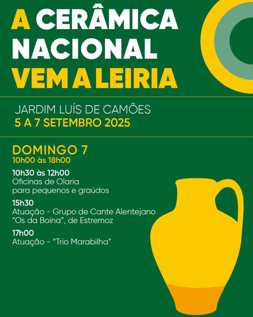 Além da mostra e comércio de peças, a Exposição Nacional de Olaria leva a Leiria concertos dos Pauliteiros de Miranda no dia 6 de setembro e o cante alentejano de “Os da boina”, de Estremoz, e o Trio Marabilha, de Leiria, no dia 7 de setembro.