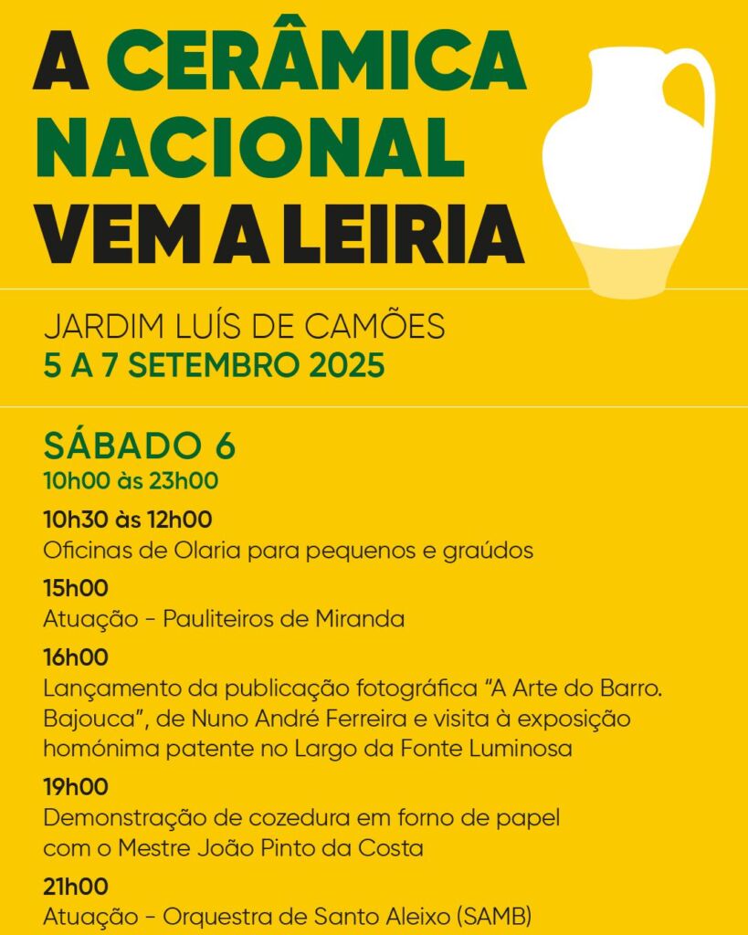 Em paralelo, o programa contempla oficinas de olaria, a apresentação da obra fotográfica “A arte do barro. Bajouca”, do fotojornalista Nuno André Ferreira, e uma exposição fotográfica sobre a olaria da Bajouca.