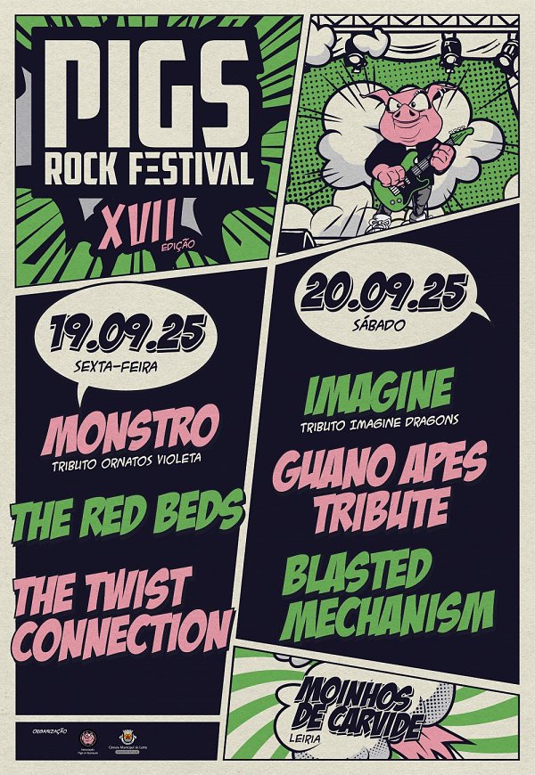 Mas há mais tributos, porque depois tocam os Guano Apes Tribute (23h45). A encerrar a noite, uma banda incontornável do rock nacional: os Blasted Mechanism festejam no Pigs Rock Festival 30 anos de carreira.