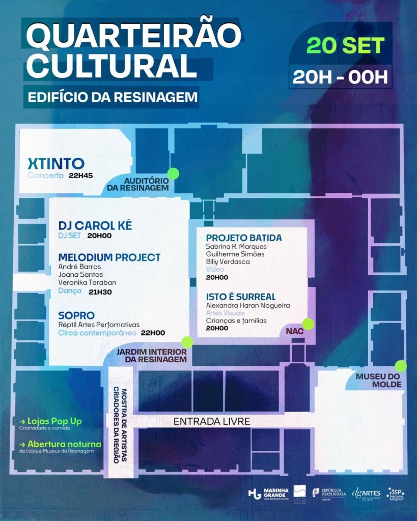 A despedida do verão inspira uma edição especial de Quarteirão Cultural na Marinha Grande. Este sábado, dia 20, entre as 20 horas e a meia-noite, o Edifício da Resinagem anima-se com mais uma edição do evento multidisciplinar pensado para todos: nesta edição especial noturna, há atividades para famílias, museus de porta aberta, música, dança, circo contemporâneo e lojas pop up.