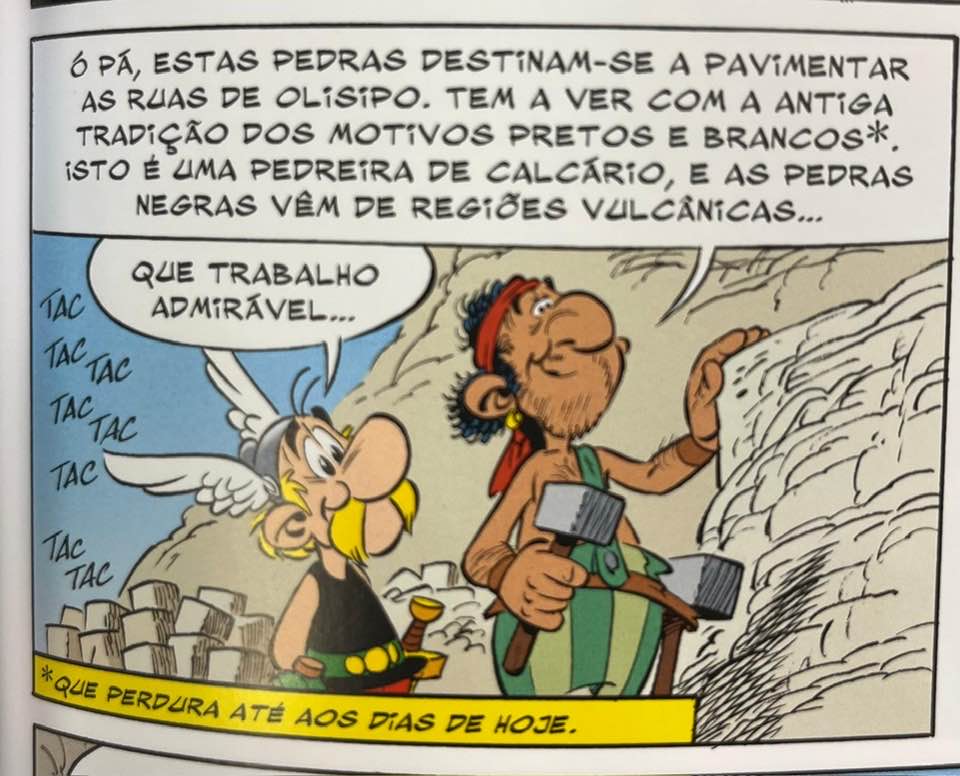 Alqueidão da Serra, local privilegiado no processo de criação da singular forma de pavimentar o espaço público – a calçada portuguesa -, não escapou à atenção dos mais famosos gauleses: Astérix e Obélix.