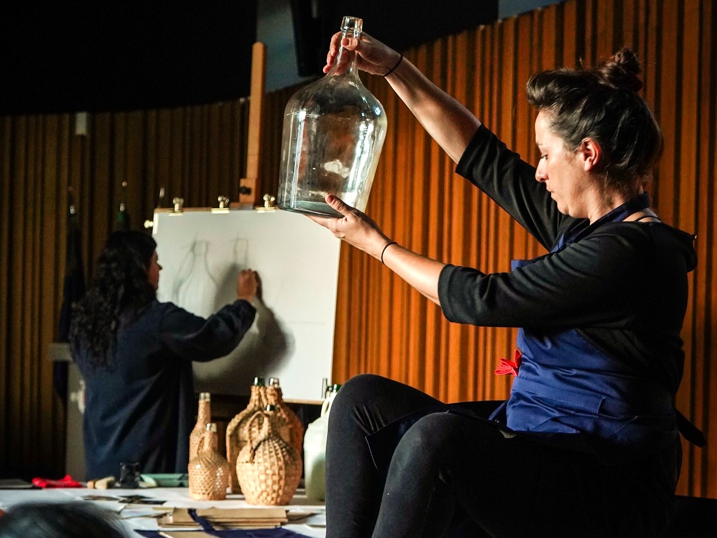 “Kit Memória Empalhar” recuperou, em forma de espetáculo, a dura história das mulheres que tiveram uma profissão já desaparecida: envolver com vime garrafas e garrafões de vidro.