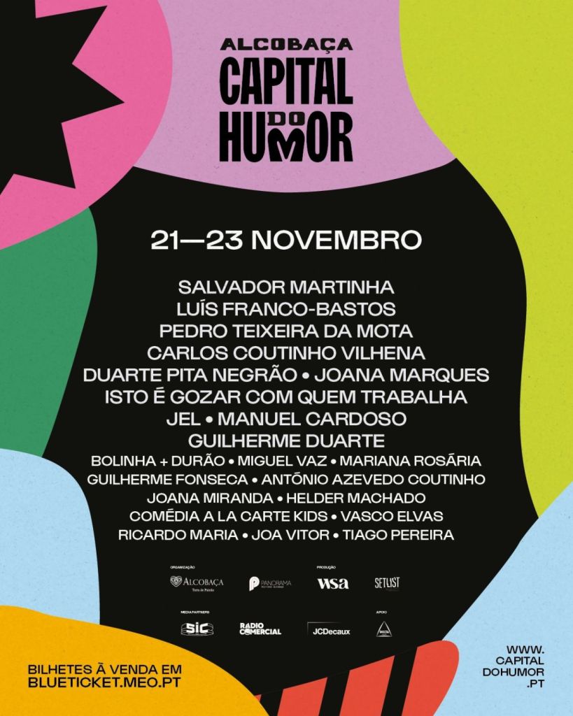 Alguns dos maiores nomes da comédia nacional vão passar em novembro por Alcobaça, para o primeiro festival Capital do Humor. É uma das grandes novidades do primeiro ano do multiusos de Alcobaça: depois de 12 horas recheadas de música este sábado, dia 1, são anunciados três dias dedicados ao riso e boa disposição, de 21 a 23 de novembro.