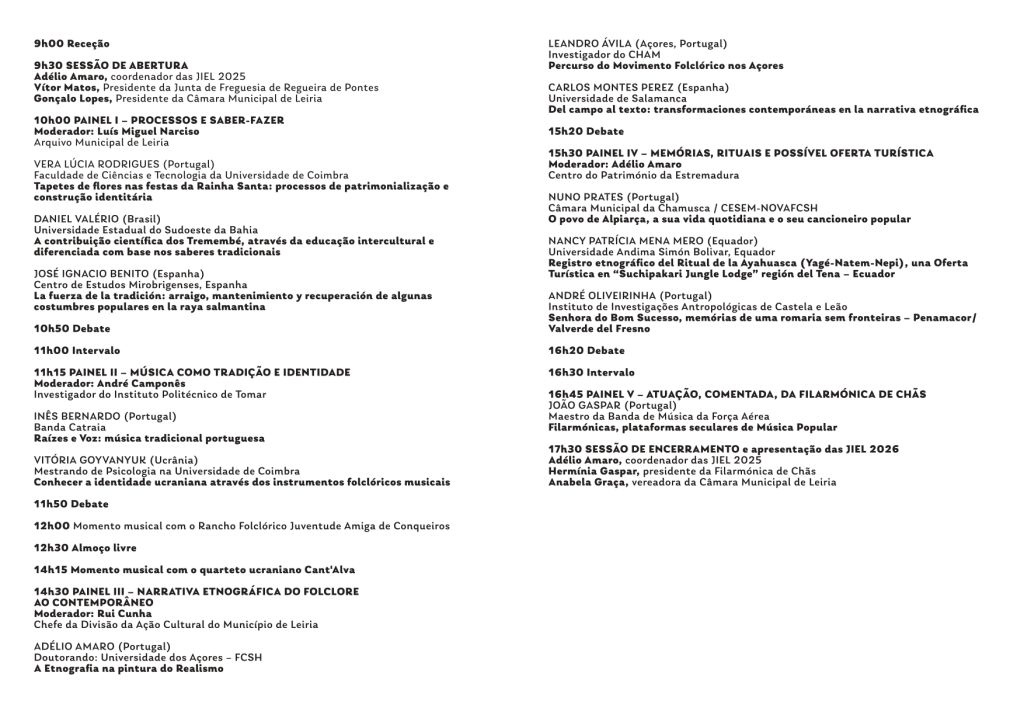 A iniciativa vai decorrer no Auditório da Filarmónica de Chãs, em Regueira de Pontes, e é, uma vez mais, uma oportunidade para “aprofundar conhecimentos, estabelecer parcerias e contribuir para o fortalecimento da comunidade etnográfica global”, avança a Câmara de Leiria e o Agromuseu D. Julinha, que organizam a iniciativa.