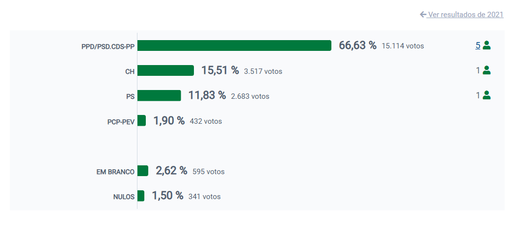 O resultado é semelhante ao de 2021, em que a coligação alcançou 62,78% dos votos. No entanto, “Ourém Sempre” perde um mandato, com o Chega a entrar para o executivo municipal com um vereador.