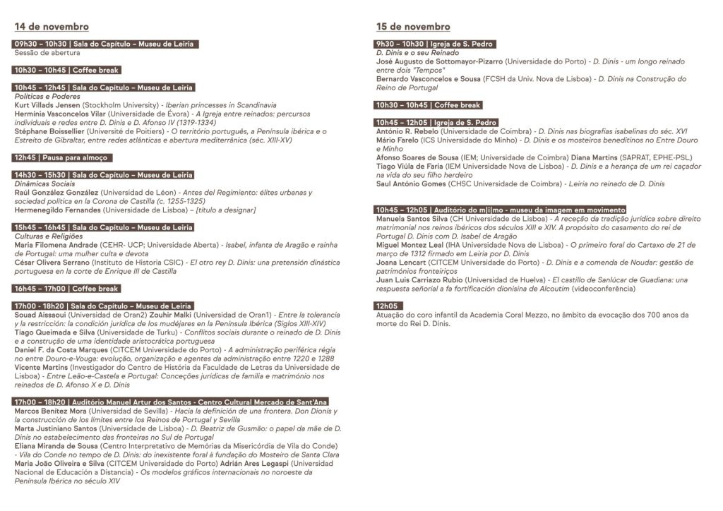 O desafio inicial era realizar um encontro científico inspirado em D. Dinis, a propósito dos 700 anos da morte do rei. Mas o convite lançado pela Câmara de Leiria à Sociedade Portuguesa de Estudos Medievais (SPEM) ganhou escala e transformou-se na 10ª edição das Jornadas Luso-Espanholas de História Medieval, sobre não só um monarca determinante para a história de Portugal, mas também a sua influência ibérica nos séculos XIII e XIV. “D. Dinis e a sua época não se entendem senão numa espacialidade ibérica”, realça a presidente da SPEM, Maria Helena da Cruz Coelho.