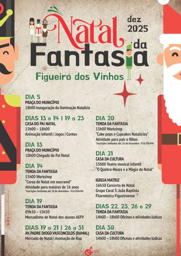 É no dia 13 que se dá a chegada do Pai Natal, que abrirá a sua Casa à visita de miúdos e graúdos. No dia 19, os alunos do Agrupamento de Escolas de Figueiró dos Vinhos dinamizam o Mercadinho de Natal, na Tenda da Fantasia; e no dia 21 é apresentada a peça “O Quebra-Nozes e a Magia de Natal”, na Casa da Cultura.