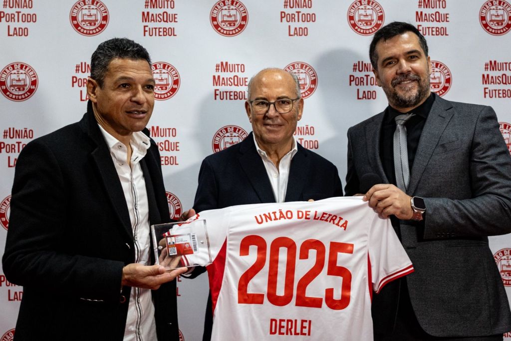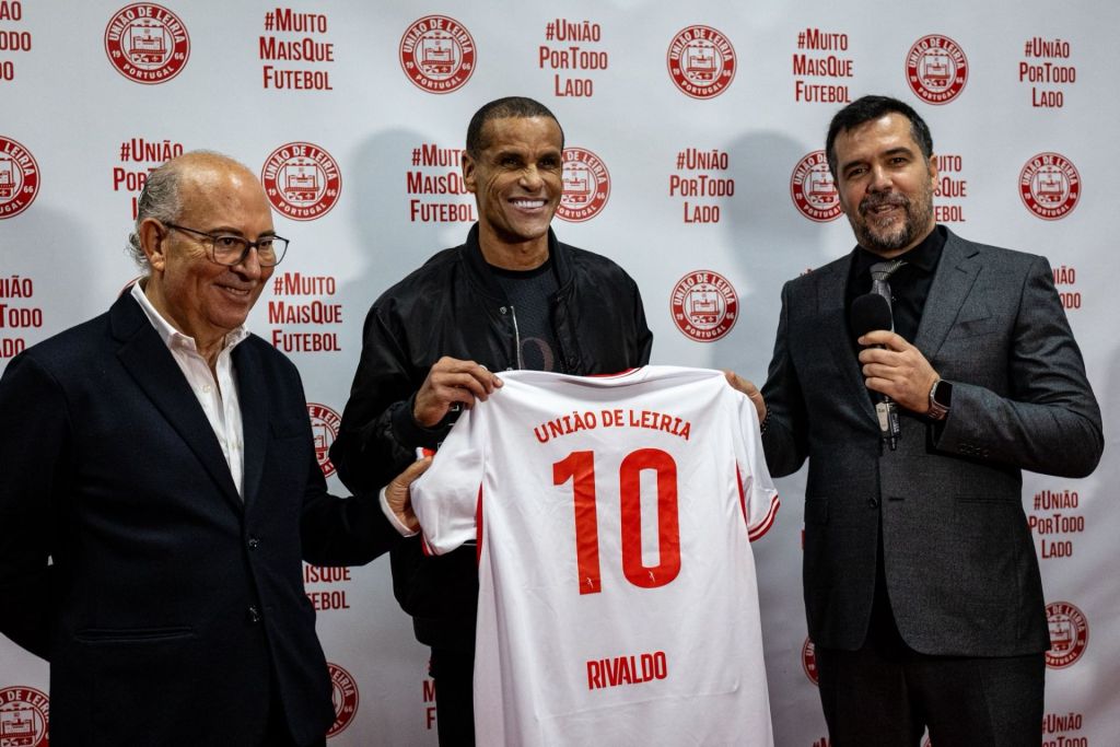 Pedro Proença, Derlei, Rivaldo e Joaquim de Almeida receberam hoje o cartão de sócio honorário e uma camisola da União de Leiria, com o seu nome escrito nas costas.