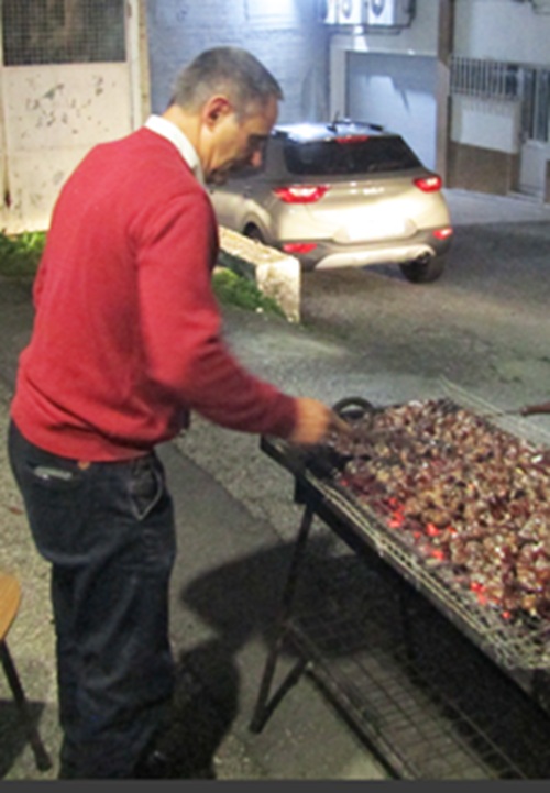 Para a distribuição das castanhas foram serventes todos os membros da direção que mereceram o nosso elogio e fizeram questão de distribuir uma refeição aligeirada, servida com churrasco e tudo acompanhado com água pé, vinho e sumo.