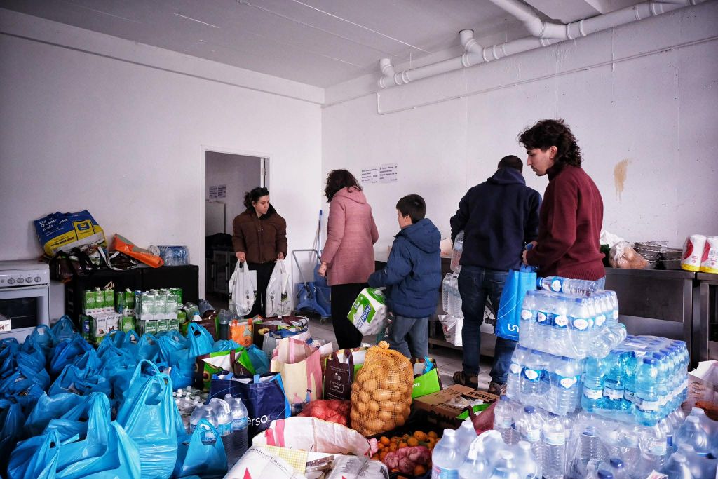 Ao mesmo tempo, muitos voluntários estão a ir ao pavilhão entregar alimentos.