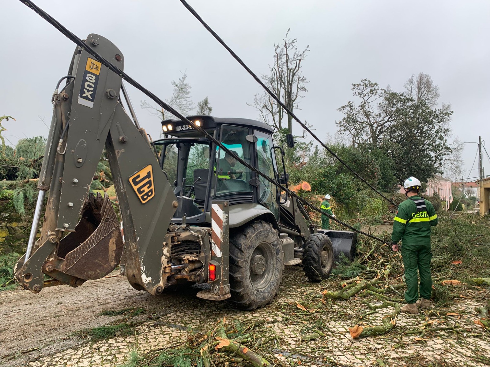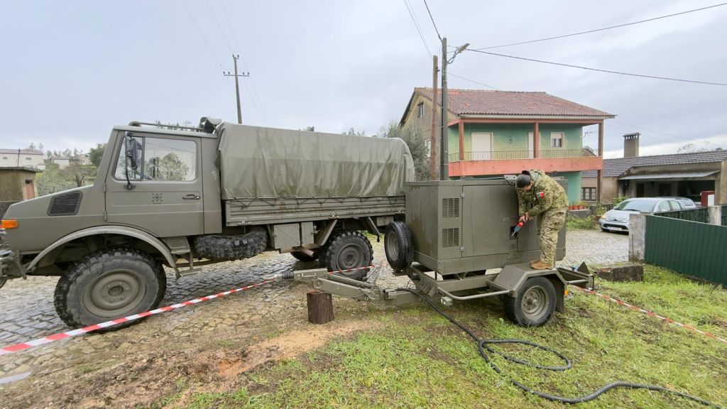 O Exército está desde dia 30 no concelho a montar lonas em edifícios que ficaram parcialmente destruídos, assegurando o carregamento, transporte e montagem de lonas, a partir de uma empresa em Vila Nova de Famalicão.