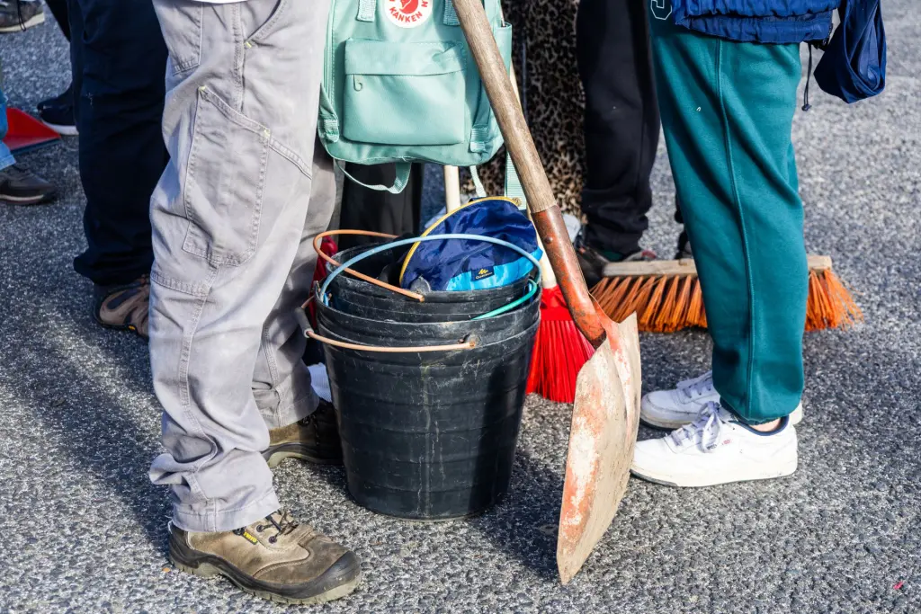 Partiram do estádio, mas nem sequer entraram, por este não reunir condições de segurança. Divididos em 13 grupos, munidos de luvas, vassouras e pás, “varreram” parques e ruas, procurando apagar a pegada de destruição deixada pela depressão Kristin.