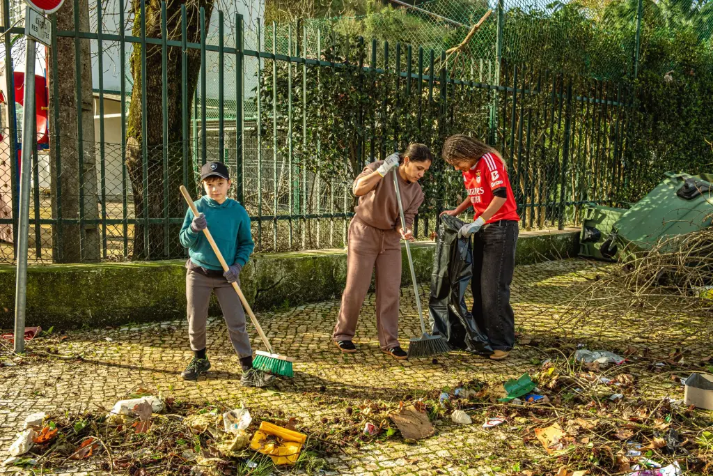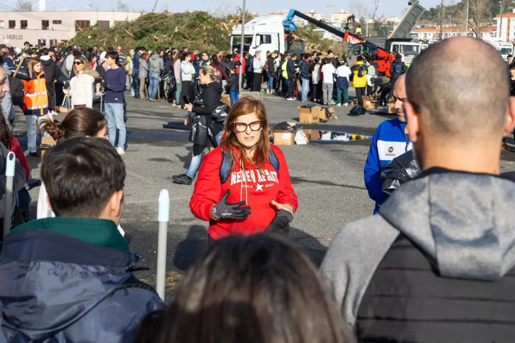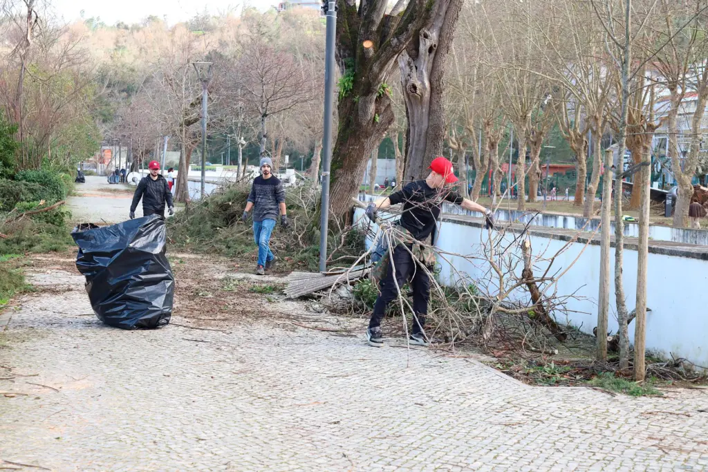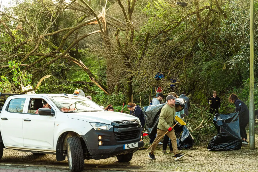 Distribuídos por zonas, removeram ramos e detritos, que colocaram em sacos de lixo sem separação, para serem mais tarde recolhidos pelos serviços de tratamento de resíduos. Antes, no curto briefing, cada guia insistiu na primeira regra: segurança. “Primeira regra, não pôr ninguém em risco, não puxar ramos nem estruturas que não estejam caídos no chão, não comprometer a segurança e não ir para taludes”, reforçou Fernando Batista, funcionário do município e guia do “pelotão” que limpou a avenida 25 de Abril e a zona da Secundária Domingos Sequeira.