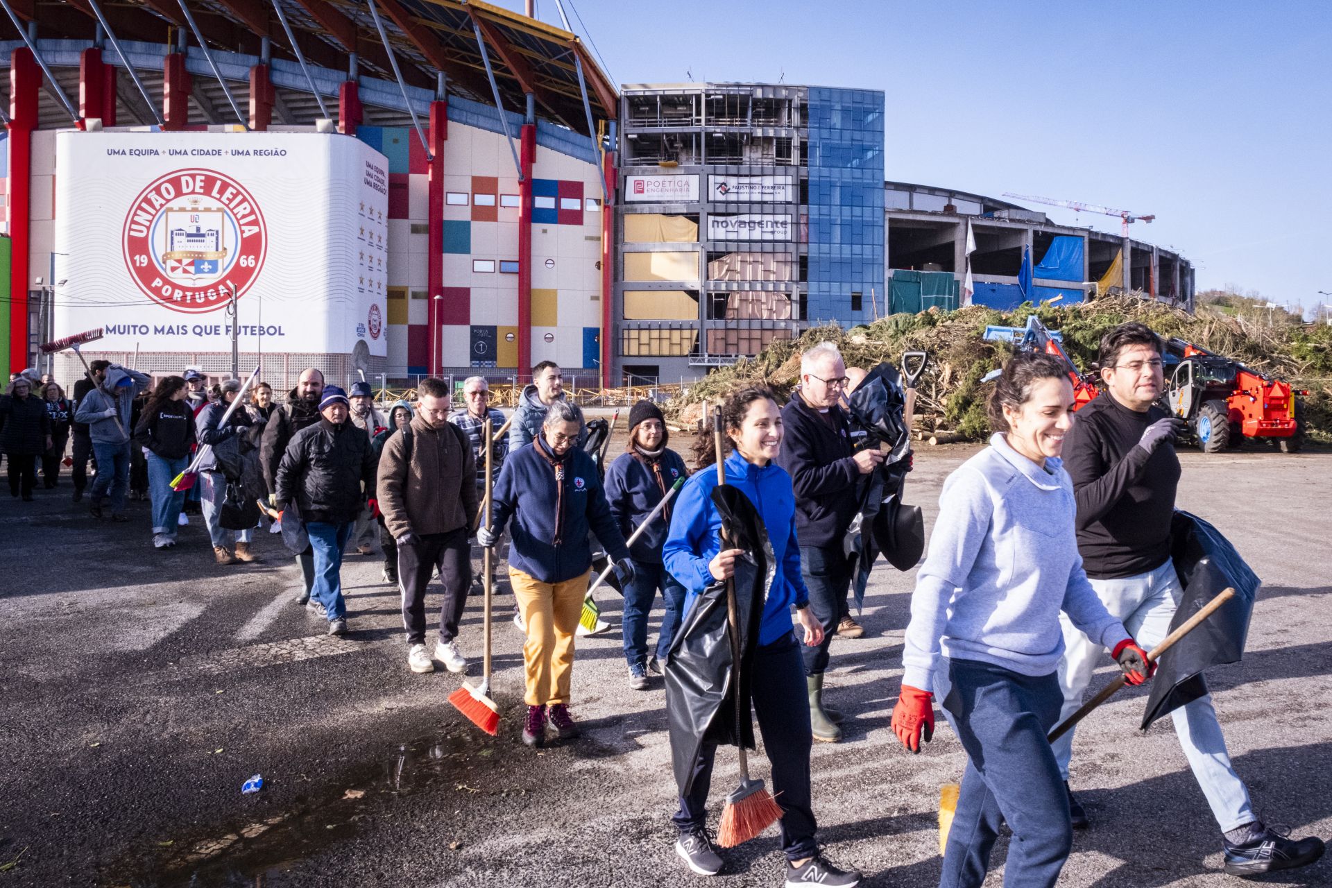 Centenas de crianças, jovens e adultos, individualmente, em família ou em grupo, do concelho de Leiria e de vários pontos do país concentraram-se no sábado de manhã, à porta do estádio movidos pelo mesmo espírito solidário: ajudar a recuperar a cidade.