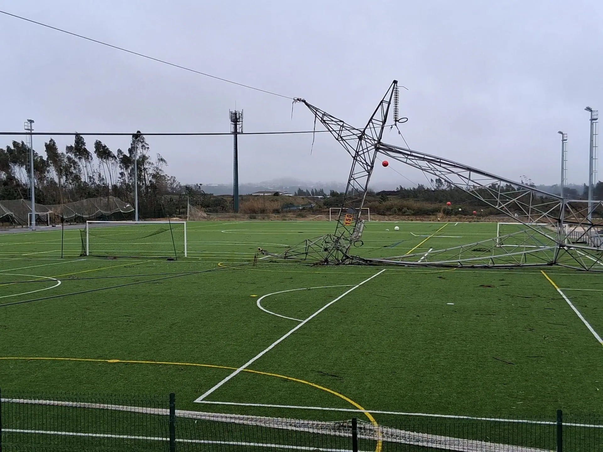 A academia de futebol da União de Freguesias de Parceiros e Azoia(UFPA)/AFLeiria não escapou aos danos e um poste de alta tensão caiu num dos campo.