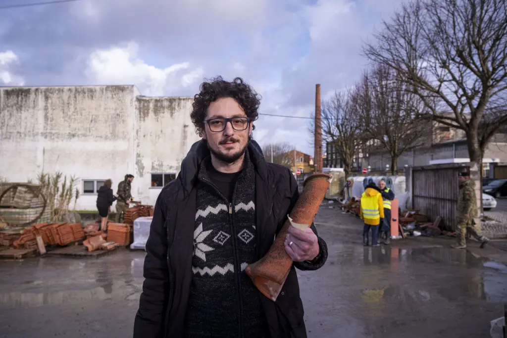 Antes que os olhares se centrem na floresta, há assuntos domésticos prementes. José Brilhante carrega, com ajuda de militares, telhas de cor preta para dentro de uma carrinha. A sua casa conta-se entre as muitas que sofreram o impacto da depressão Kristin. No ponto de fornecimento de materiais, instalado desde o dia 2, nos estaleiros da Câmara da Marinha Grande, encontrou o que precisava, podendo agora blindar a habitação, em Boa Vista, do efeito da chuva.