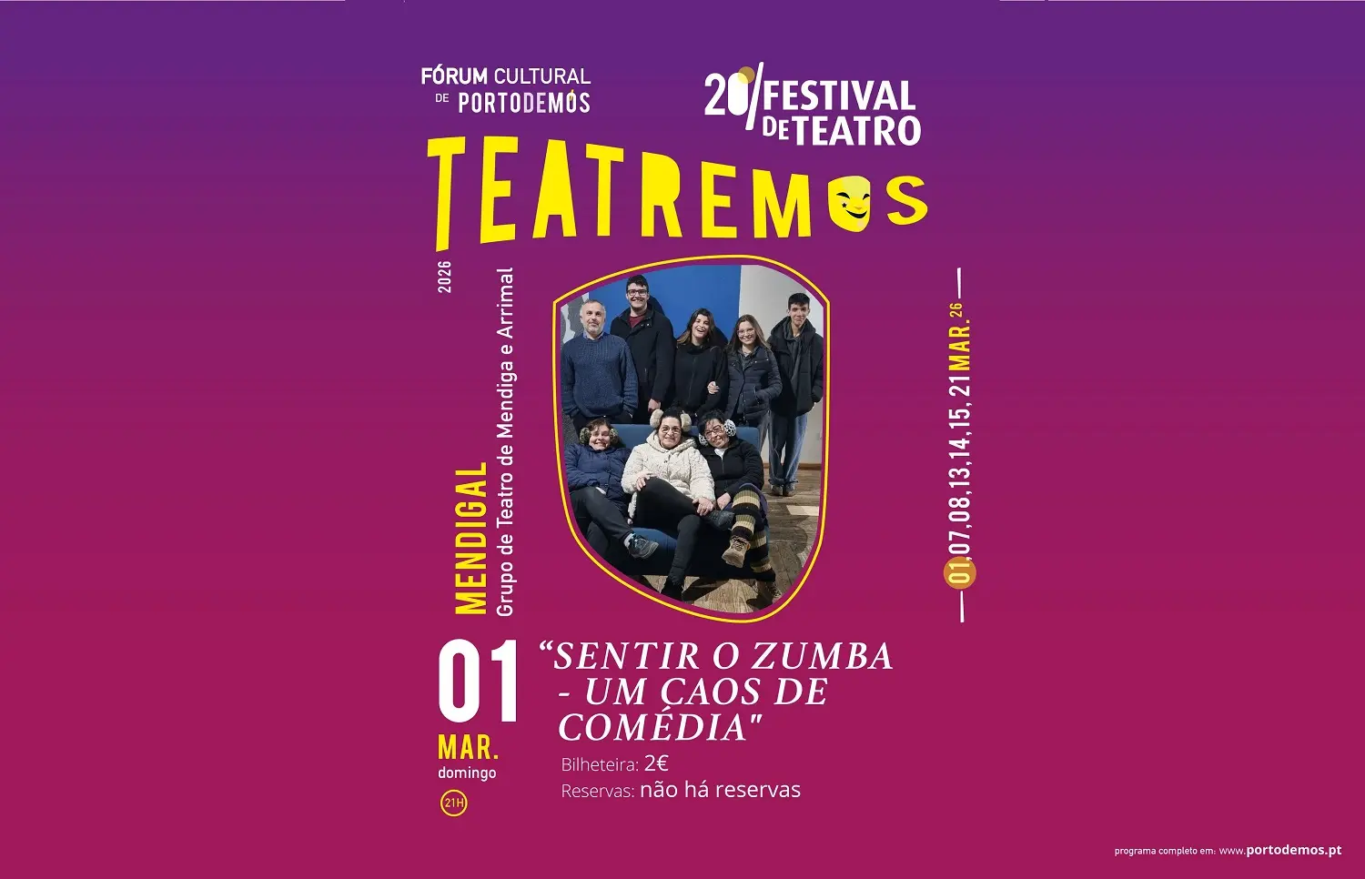 Numa pequena aldeia, uma aula de zumba torna-se palco improvável para um retrato ácido, cómico e profundamente humano da vida comunitária. Um desmaio inesperado desencadeia uma sucessão de equívocos, boatos e tensões… É com “Sentir o Zumba – Um caos de comédia” que arranca no domingo, 1 de março, a 20ª edição do Teatremos – Festival de Teatro de Porto de Mós.