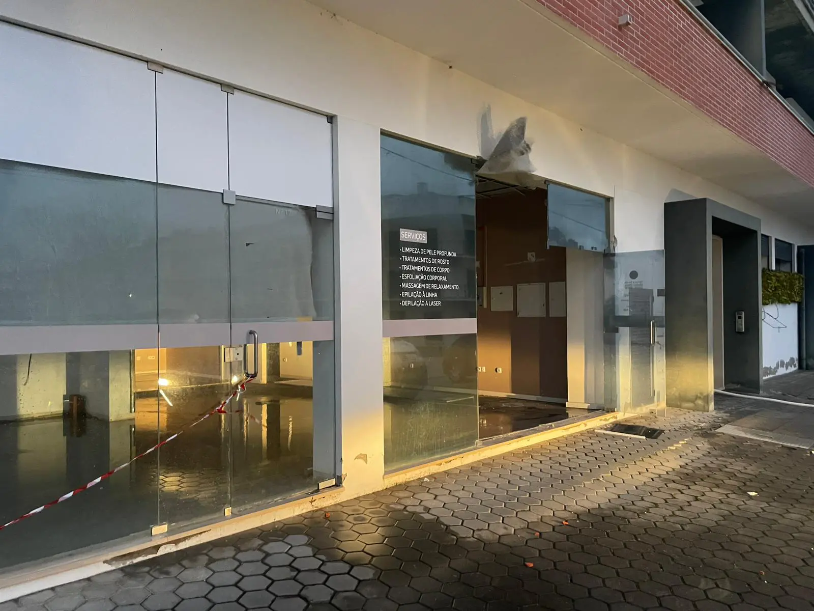 Dia 2 de fevereiro era motivo de festa. Fazia um ano de abertura do espaço de estética e beleza de Adriana Serafim, em Caxarias. Mas a tempestade Kristin foi impiedosa e levou tudo com ela. O espaço está agora irreconhecível. Completamente aberto, com apenas duas portas de vidro ainda de pé. O restante foi arrastado pelo vento ao longo de muitos metros.