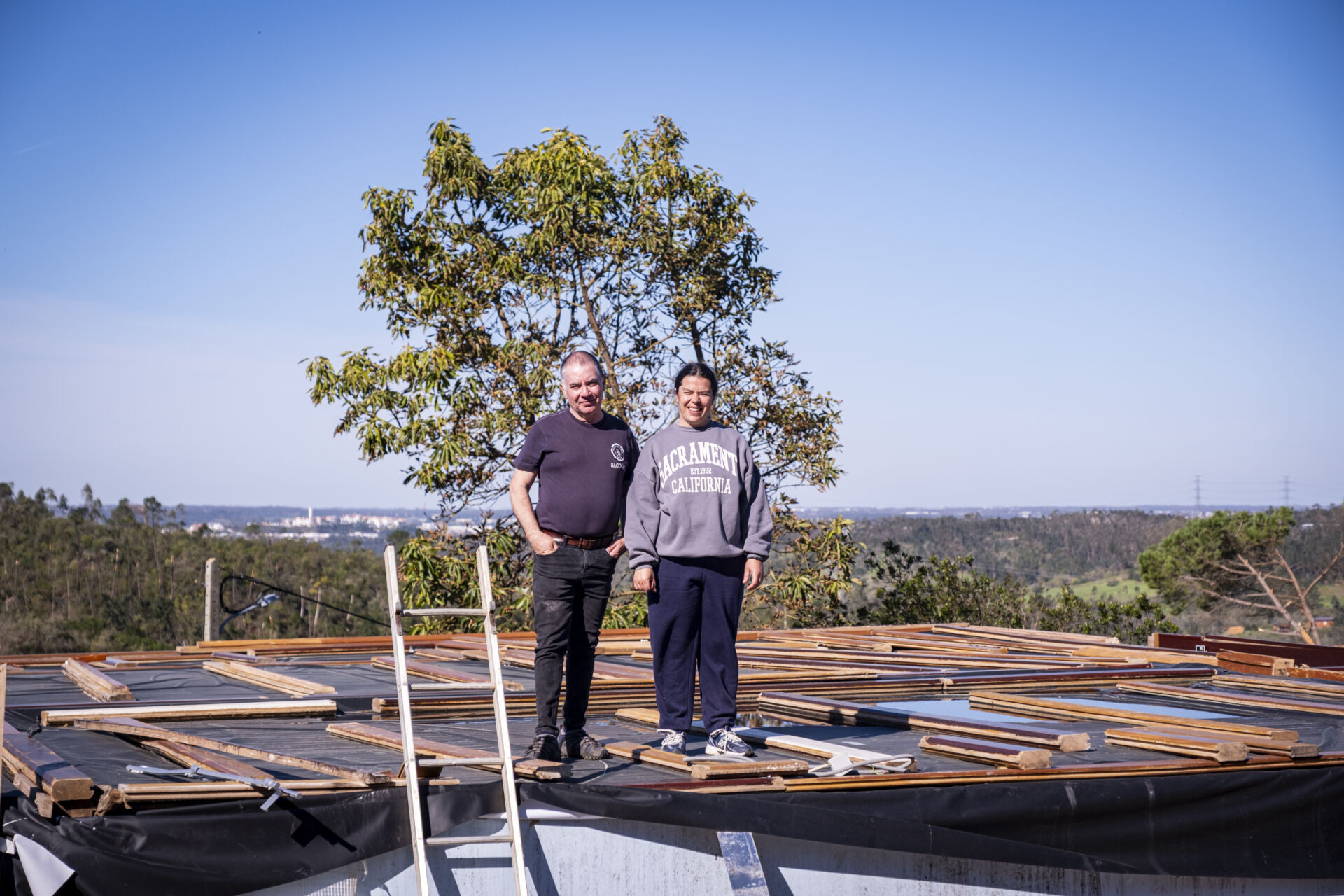 Carlos e Sara Massano vivem em Martinela, freguesia do Arrabal. Habitação em madeira exótica ficou totalmente destruída na tempestade, mas o casal quer manter vivo o sonho que os levou até ali há 23 anos