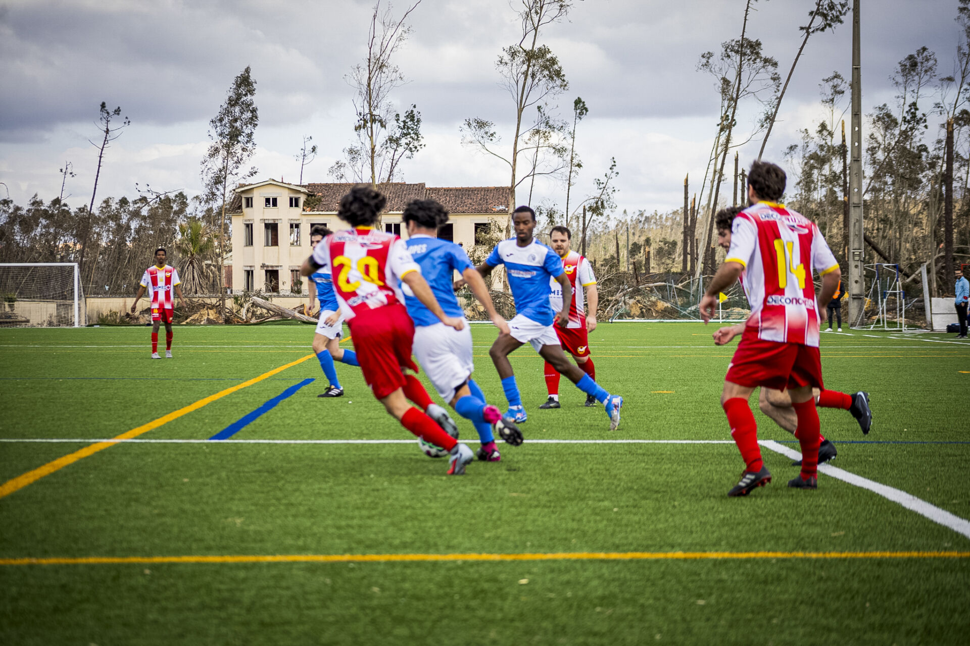 Depois de mais de um mês de espera, a bola voltou a rolar para os jogos da primeira divisão distrital de futebol. Jogadores, equipas técnicas e adeptos reencontraram-se, mas há sinais da destruição que continuam visíveis.