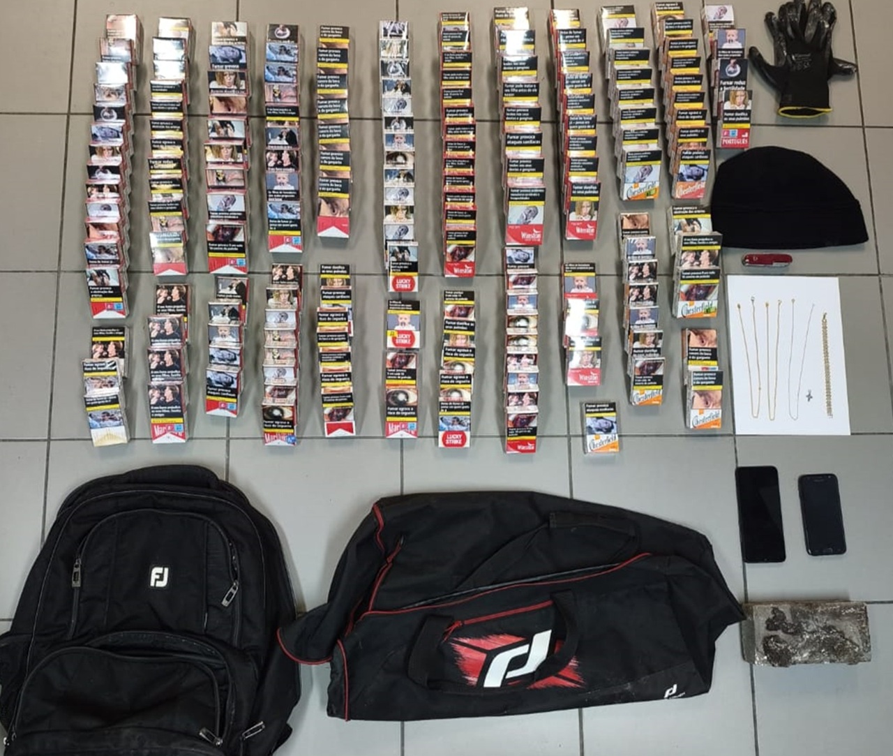O indivíduo foi intercetado pouco depois do assalto “nas imediações do local do furto, na posse dos artigos subtraídos”, entre os quais 173 maços de tabaco, três fios em material similar a ouro, dois telemóveis, uma pulseira e uma medalha, além de material relacionado com a prática de ilícitos criminais, como luvas, gorro, mochilas, canivete.