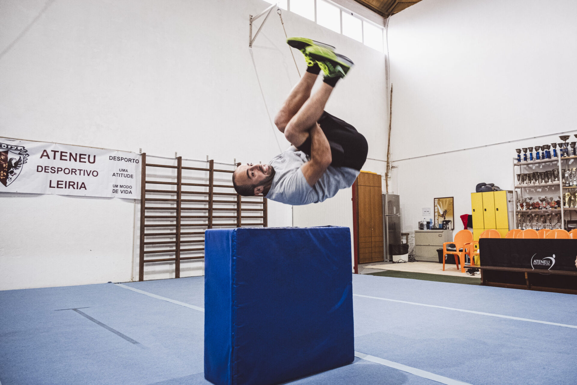 Nos treinos, que acontecem esta época à terça e à quinta-feira, os atletas estão divididos entre faixas etárias. Os mais novos, até aos 16 anos, começam por treinar as bases, reforçar as capacidades básicas como a coordenação e a flexibilidade. E aprendem também alguns movimentos de parkour.