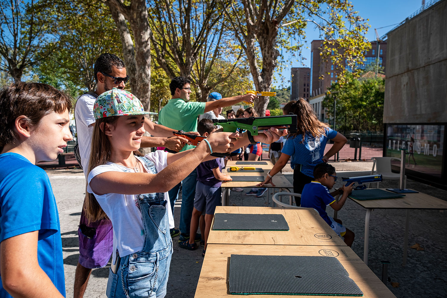Para apresentar as diferentes modalidades que dinamiza, o clube está, este fim de semana, junto à sua sede, no parque do avião, com alguns dos equipamentos utilizados – bicicletas, pistola a laser, espadas, fatos de esgrima -, irá fazer algumas demonstrações e sobretudo convidar o público a experimentar, conhecer as regras das modalidades e saber o horário dos treinos.