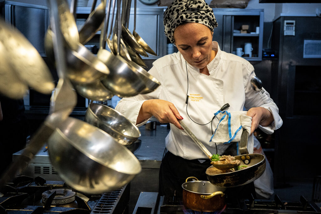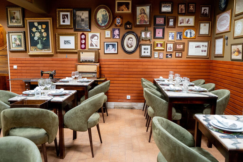 O avô de Ana Branco, chef e proprietária do restaurante, era António Padeiro, conhecido pela carreira de jogador de futebol no Comércio de Alcobaça, mas também pela restauração. A alcunha de “Padeiro” vem-lhe do facto de, já em 1938, no forno, que ainda está no restaurante, ter começado por “cozer o pão, que vendia para fora”. Depois “seguiram-se os rojões, as sandes de presunto e a cerveja; foi a primeira casa do distrito de Leiria a ter cerveja à pressão”, conta Ana Branco. Mas alguns dos pratos que remontam a essa data, e fazem sucesso no restaurante, são da autoria da mãe da chef, Maria Júlia André, que, quando ficou viúva, tomou conta do restaurante. O cabrito no forno, o frango na púcara e alguns doces conventuais que constam da ementa têm a mão da mãe: “A minha mãe é uma excelente cozinheira, mas já só cozinha para as minhas filhas”. Mãe e filha ganharam prémios com doces que fizeram em conjunto para o Concurso de Doces Conventuais de Alcobaça, o pecado do céu e o paraíso. Estão ao dispor no tabuleiro dos doces que vem à mesa no final da refeição. “Somos guardiões da cozinha tradicional portuguesa, não somos permeáveis a mudar”. E há muitos e bons pratos emblemáticos para provar como o arroz de perdiz com nabiças, os croquetes de borrego estufado com arroz no forno e os rissóis de robalo e camarão com arroz de camarão. Ana Branco fala do restaurante com o coração. É lugar de memórias, em que os clientes estão em contacto com os objetos pessoais da família que decoram as várias salas.