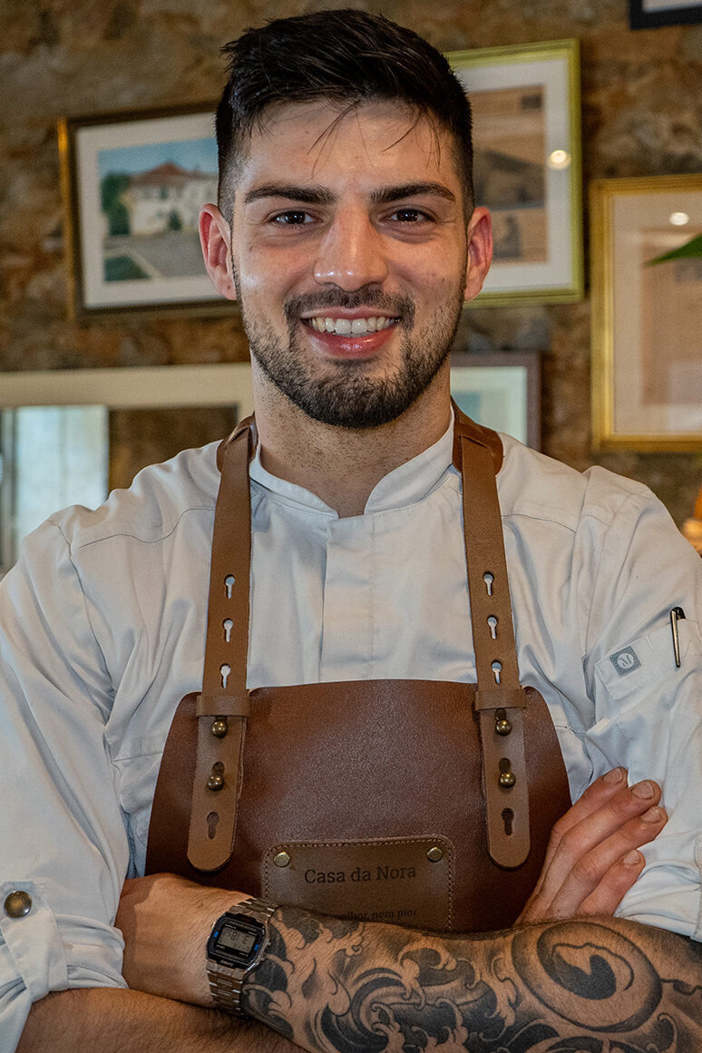 Na sala de refeições ainda se vê uma pia que pertencia ao antigo lagar de azeite. O edifício serviu também de armazém agrícola do poeta Afonso Lopes Vieira e entrou em ruína, até Paulo Fetal o reabrir como restaurante, em 1997. Da janela vê-se o ex-líbris da freguesia, a nora, alimentada pelo rio Lis. À mesa servem especialidades de sempre, como a sopa de peixe com coentros, a cabidela de galo, o pato assado no forno com arroz de castanhas (ao sábado), a mão de vaca com grão, o polvo à lagareiro ou o cabrito. Rodolfo Fetal, filho do fundador e atual gerente deste restaurante e hotel, explica que se introduziram “elementos de fusão” nas sugestões diárias do chef, a par da ementa fixa e tradicional, com sabores mais familiares. Do poke de atum com crocante de arroz e algas ao tataki de atum com arroz frito e bimis ou à garoupa grelhada sobre arroz de bivalves à Bulhão Pato, há espaço para inovar, acompanhar as estações e sair “fora da caixa”, comenta o chef Rafael Ferreira. Os peixes vêm da lota da Nazaré, o porco da Sertã, utilizam-se excedentes de hortas locais e ainda as espinhas, ossos, cascas ou talos para fazer caldos e molhos, chips e pós. Da aliança entre sabores típicos e técnicas modernas, visível na preparação da barriga de leitão, que cozinha a baixa temperatura em sous vide durante 36 horas, nascem propostas distintas, sem esquecer clássicos regionais como as morcelas de arroz e as Brisas do Liz, para degustar também na esplanada.