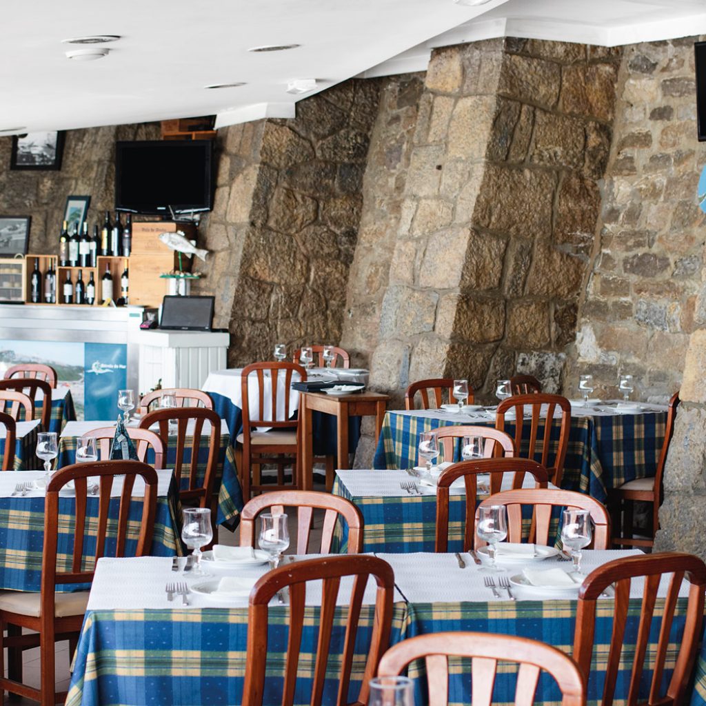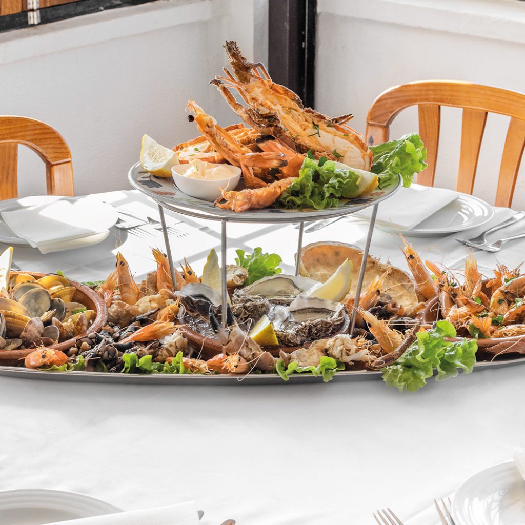 Debruçado sobre o mar o restaurante embala-se, naturalmente, no ritmo das ondas. Nada de surpresas então para a decoração com elementos marítimos e os aquários, à mostra, serem parte do charme de escolher o que se irá comer com frescura. Para os mais famintos, há mariscada em porção generosa para partilhar, que assim como a massada de lavagante – feita à base de produto encontrado na costa portuguesa –, é recomendação do chef. Igualmente bem indicada entre as especialidades são as lulas de coentrada, apresentadas com batata a murro.