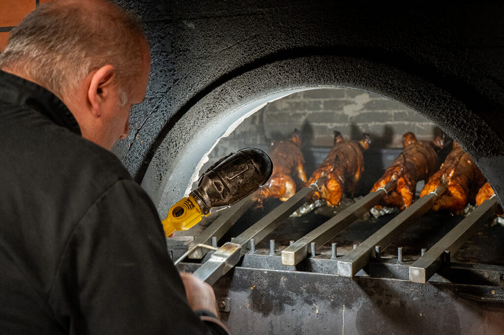 Todos os meses saem em média 850 leitões de 12 fornos. Assam duas horas e meia até ficarem no ponto, com a pele crocante e a textura da carne uniforme. São servidos com batata frita, salada mista, laranja e o imprescindível molho, podendo guarnecer com risotto de cogumelos. Uma combinação que gera romarias em torno de um “produto muito português”, sublinha Zita Freire, CEO do Grupo FF, que controla toda a produção. Clientes habituais como André Correia, de Alcobaça, elogiam a qualidade deste leitão, para si “o melhor da zona”. Grande e com preparo à vista, a sala é confortável e o serviço cuidado, o que diferenciou e projetou este restaurante. Saboreie também os croquetes, alheira e os ovos rotos de leitão, os peixinhos da horta, bifes e risottos, o arroz de tamboril e os doces. Espreite o Mundo do Peixe, se preferir almoçar peixe fresco grelhado.