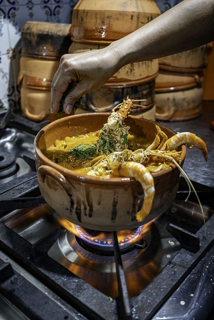 Fim de semana é sinónimo de fila à porta. “É sempre um carnaval”, ilustra João Ramusga, que divide sociedade com a irmã, Liliana. Nesta mesa reinam os sabores marítimos e o prato de eleição é o arroz de marisco, distinguido em 2011 como uma das “7 maravilhas da gastronomia portuguesa”. Satisfaz duas a três pessoas, é feito ao momento e leva camarão, sapateira, amêijoas e lagosta. O arroz de tamboril, a mariscada, o peixe grelhado e certas propostas de carne são alternativas de feição não sem antes ceder à tentadora tábua com percebes, camarões da costa e de Moçambique, pasta do mar, tostas e queijo. A qualidade da oferta, que atrai regularmente personalidades conhecidas do futebol e da política, seria, porém, insuficiente se o serviço ficasse aquém das expectativas: “A Praia da Vieira atrai mesmo muita gente e o interessante é a forma como recebemos bem as pessoas. É isso que as apaixona e as faz voltar”, considera João, que todos conhecem como “Ledo”, a alcunha que já atribuíam ao pai, Alfredo Ramusga. A decoração deste restaurante familiar, fundado a 10 de junho de 1979 por Alfredo e Maria Elisabete Ramusga, alude ao mar, vizinho de todos os dias. Na época balnear, a Praia da Vieira compõe-se de barraquinhas e, em maio e junho, alimenta-se a tradição da Arte Xávega com a saída dos barcos e o auxílio dos tratores. Ainda presentes na zona mais antiga da praia estão os armazéns das embarcações, as redes de pesca e a lota.