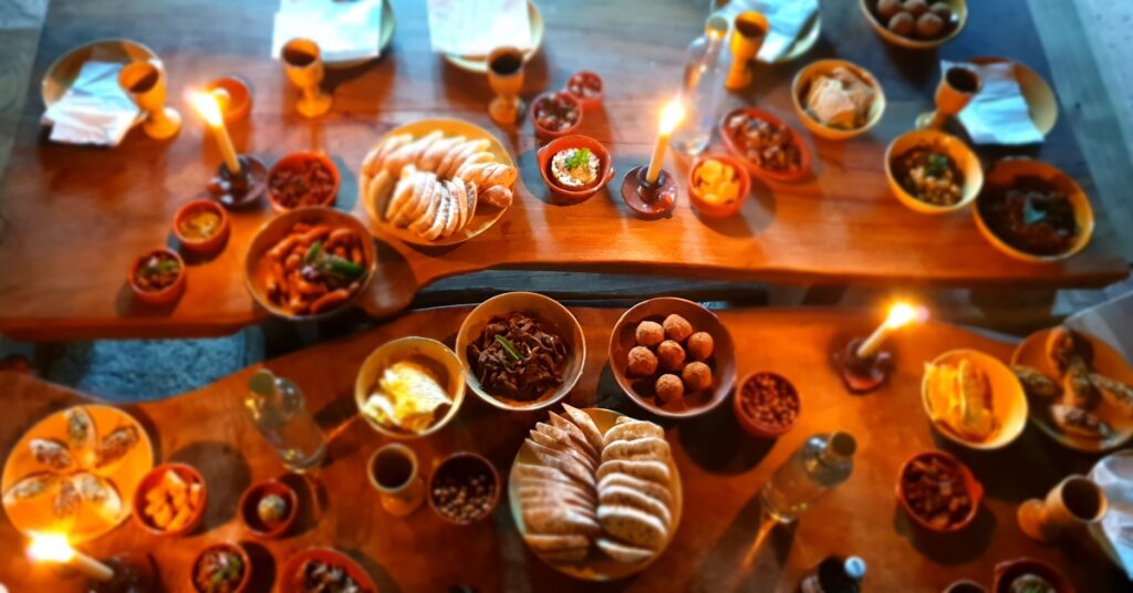 Emanuel Rosa é o proprietário deste restaurante temático, situado em pleno centro histórico de Tomar, onde os comensais assistem a recriações teatrais dos tempos em que os reinos se conquistavam à lei da espada. É Emanuel quem escreve os textos bem humorados para os animadores que vão surpreendendo ao longo da refeição. “A ideia surgiu durante uma viagem ao norte da Europa em que conheci um lugar com este conceito”. Achou “que fazia todo o sentido ter um restaurante assim em Tomar”. Originário