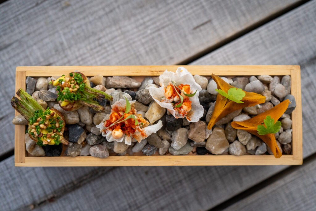 O coração deste projeto é o sentido de lugar. O termo “terruja” significa “terra” no calão mirense, a mesma que o chef Diogo Caetano reabraça depois de passar por alguns dos melhores restaurantes do mundo. Natural de Mira de Aire, voltou às origens e lidera este pequeno restaurante inserido no The Nest