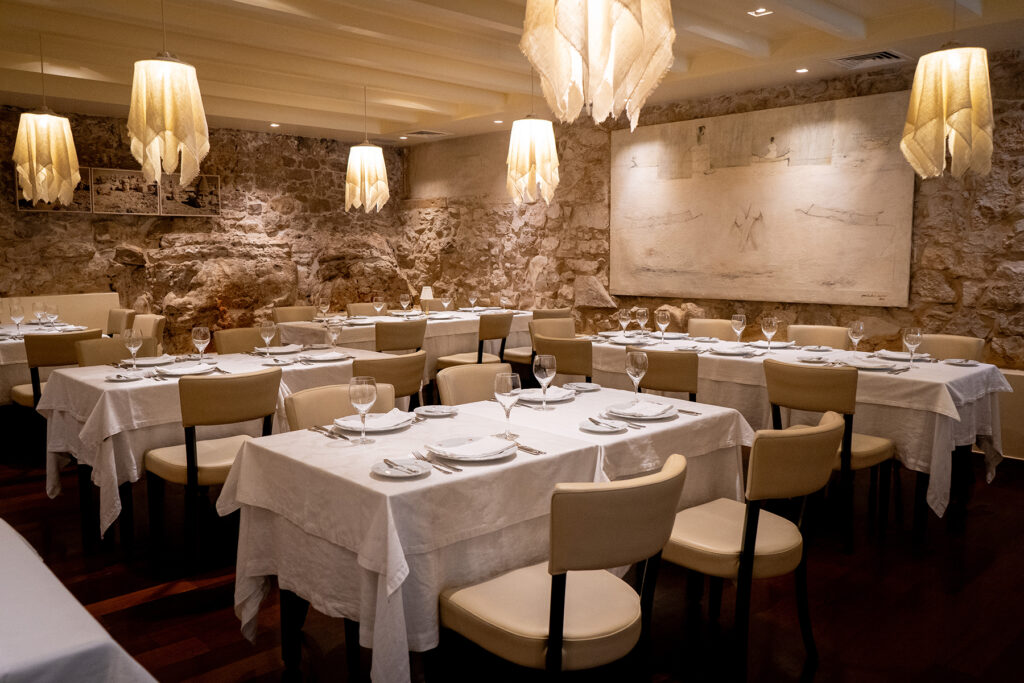 da família, a bordar e a confecionar os pratos, respeitando o preceito e “aquela linha perfeita”. Com lotação muito aquém da demanda, a sala em pedra recebe comensais rendidos ao pão cozido em forno a lenha, manteigas, pastéis de bacalhau, queijo de ovelha amanteigado Serra da Estrela e presunto Ibérico Bolota Maldonado. Nas especialidades constam o bacalhau gratinado (pode levar camarão), as açordas, o