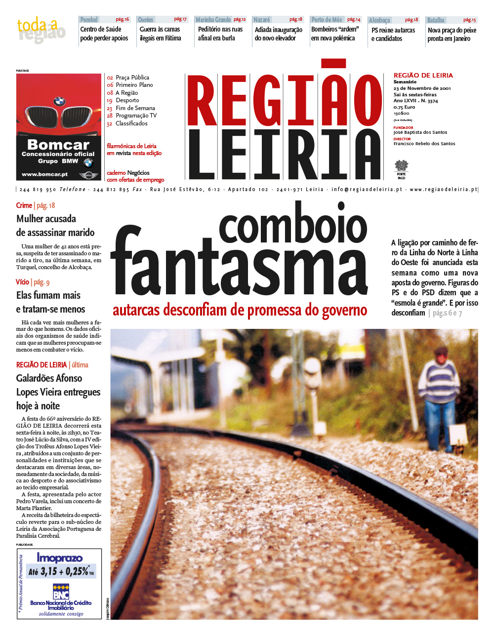 Edição 3374 de 23 novembro 2001 + Revista Filarmónicas do concelho de Leiria