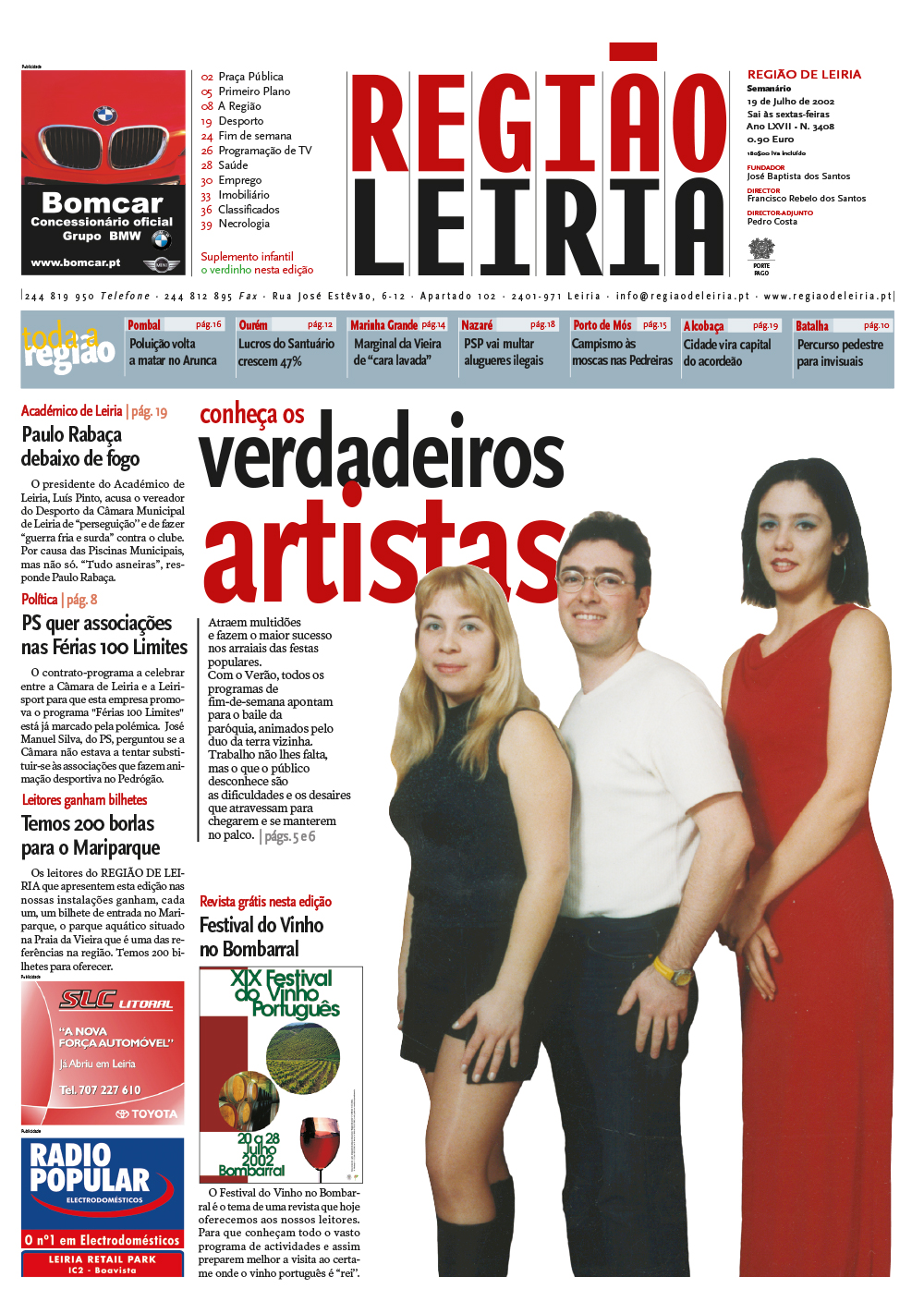 Edição 3408 de 19 julho 2002 + Suplemento O Verdinho + Revista Festival do Vinho Português