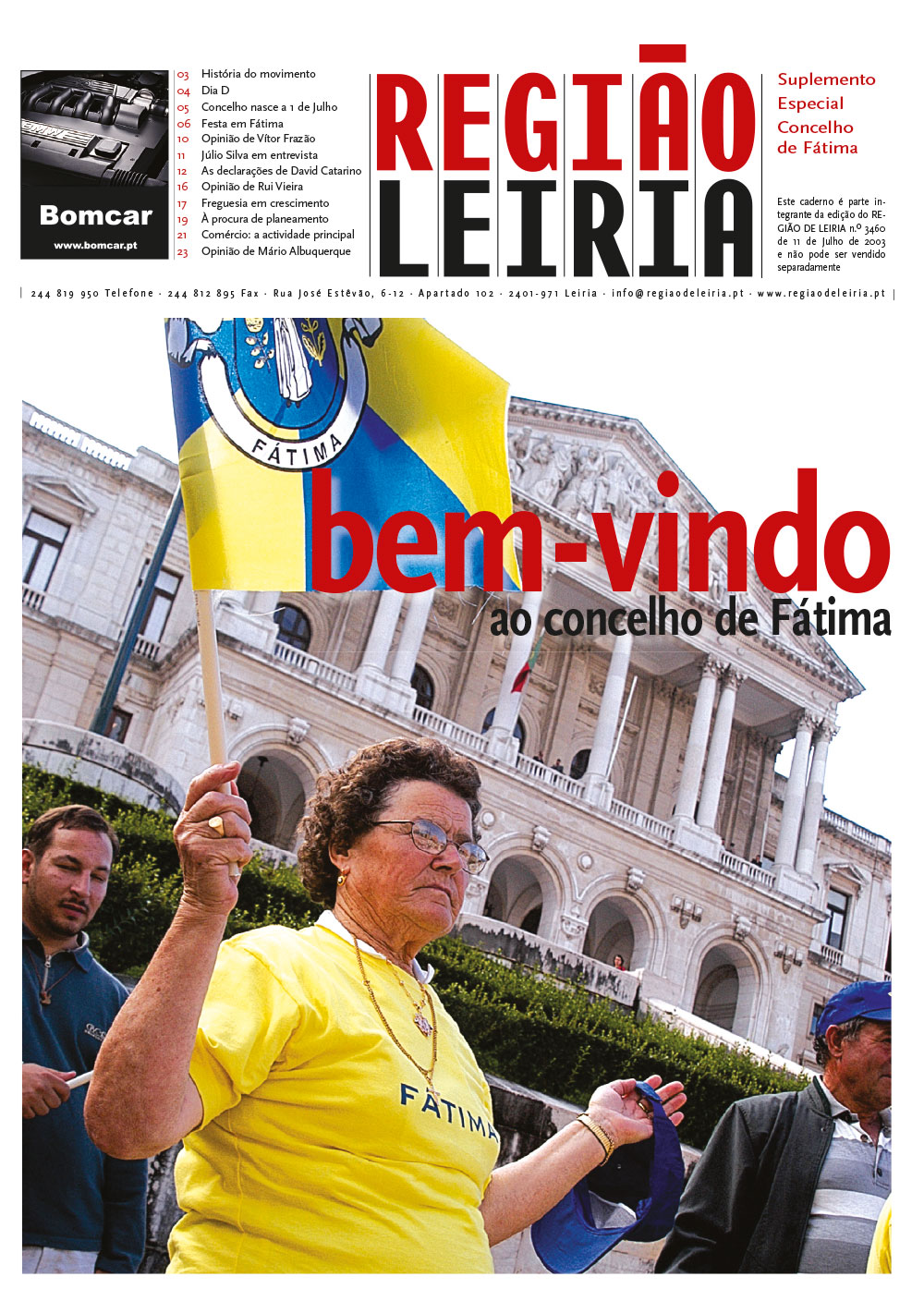 Edição 3460 de 11 julho 2003 + Suplemento Concelho de Fátima