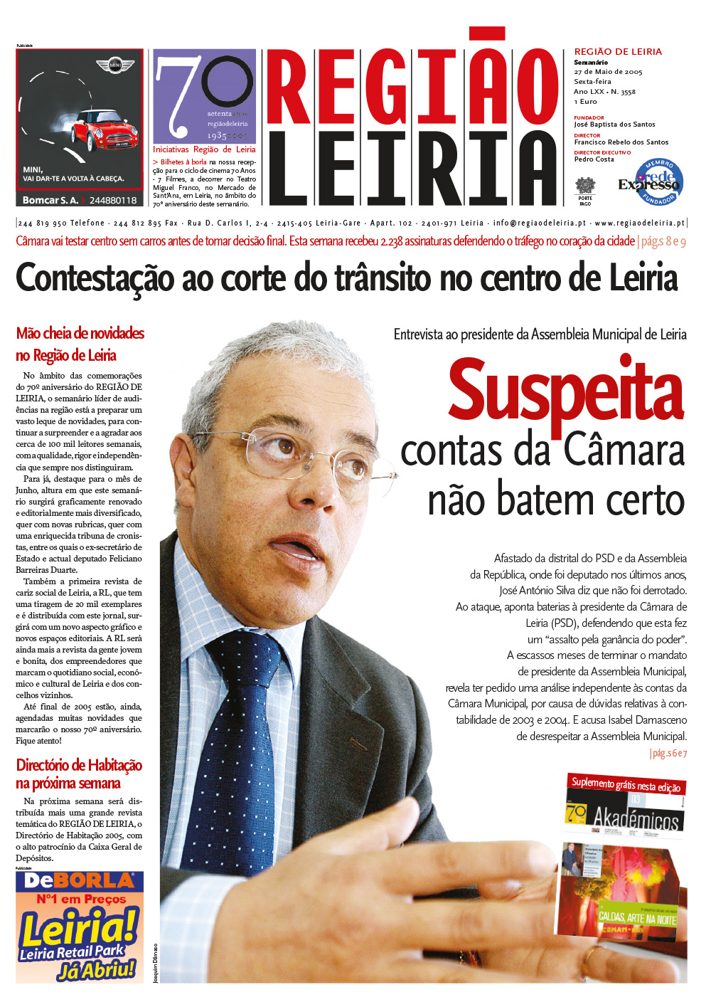 Edição digital do REGIÃO DE LEIRIA + Suplemento Akadémicos, em formato PDF.