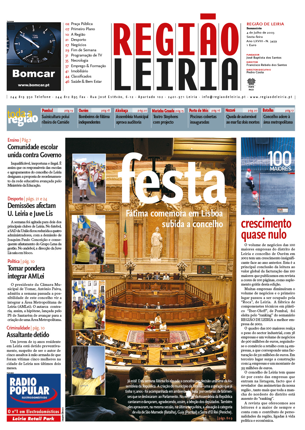 Edição digital do REGIÃO DE LEIRIA, com a revista 100 Maiores e Melhores Empresas + Edição 3459, em formato PDF.