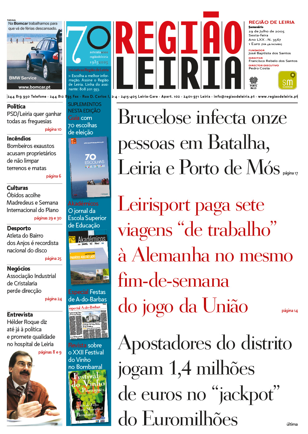 Guia 70 Escolhas de 29 julho 2005 + Edição 3567 + Suplemento Akadémicos + Revista Festival do Vinho