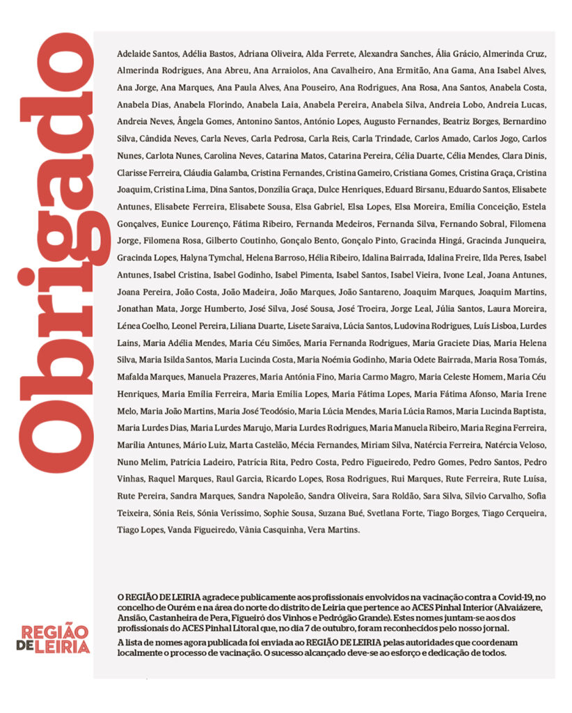 Covid-19: REGIÃO DE LEIRIA presta reconhecimento aos profissionais associados ao plano de vacinação