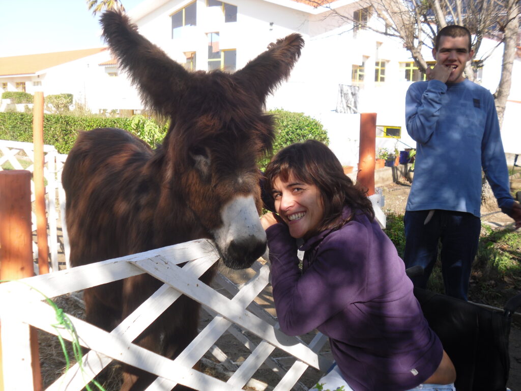Tem 33 anos, pelagem branca e é um burro. Foi doado, assim como boa parte dos animais que por ali vivem, ao Agromuseu D. Julinha, em Ortigosa, Leiria.