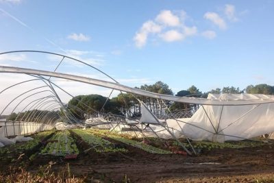 “Está tudo dizimado. As estruturas agrícolas estão devastadas”. Fábio Franco, proprietário da Sociedade Agrícola do Vale do Lis, em Ortigosa, Leiria, perdeu em segundos as novas estufas que tinha começado a montar há cerca de uma semana e um hectare e meio de plantação de alfaces.