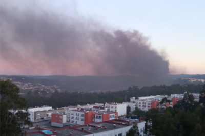 Fogo em detritos numa fábrica desativada nas Cortes provoca nuvem de fumo em Leiria