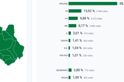 O PSD ganhou a câmara com 58,18% dos votos.
