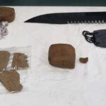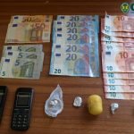 O suspeito tráfico de estupefacientes,, tinha ainda consigo 120 euros, um telemóvel, uma faca e uma balança de precisão