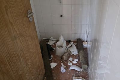 Um dos equipamentos sanitários do parque em Pombal foi completamente destruído.
